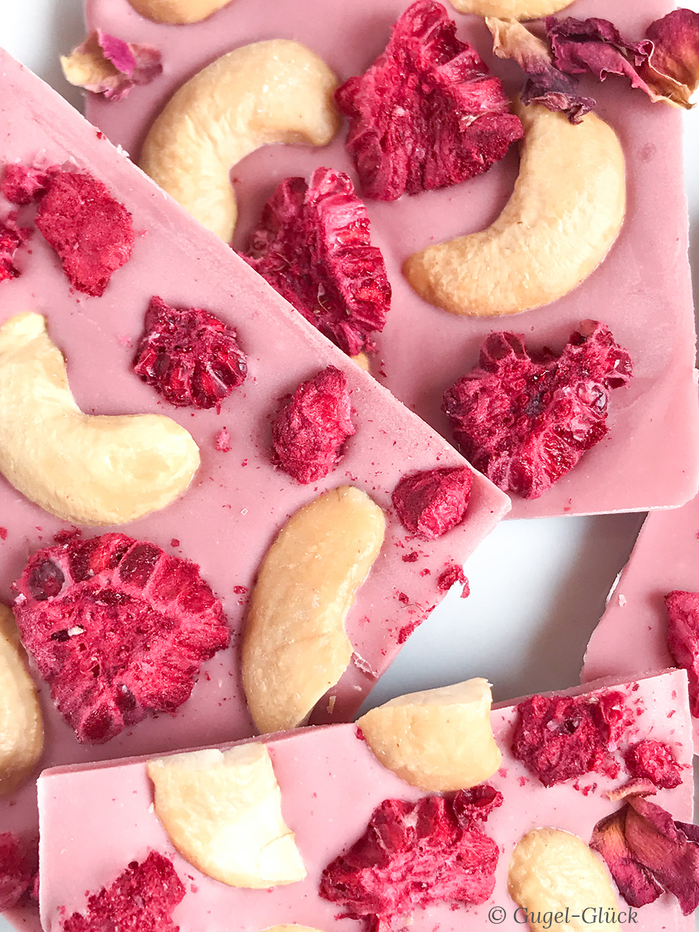 - Schokolade (ich habe Rubyschokolade verwendet, die ich mir im Internet bestellt habe)